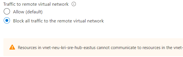 Then, modify the peering on the spoke side and block traffic to remote network, as shown in the screenshot below:
